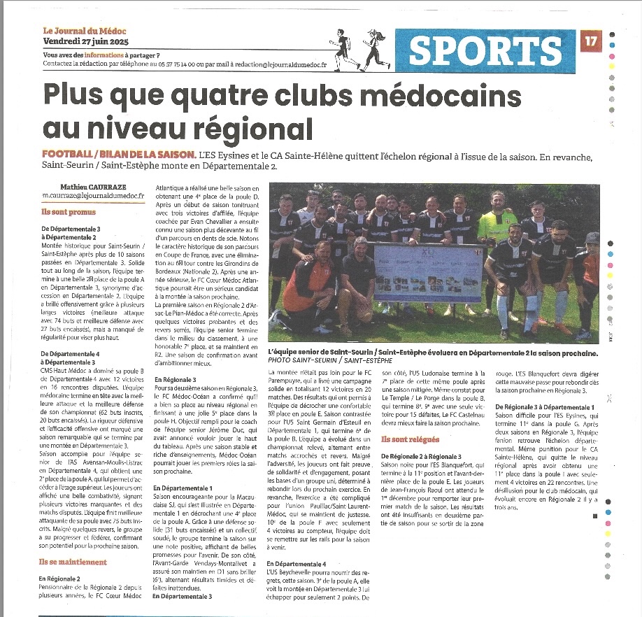 Sylvain NEGRIER s’est très investi pour que le Club reparte cette saison : il a pris contact avec des joueurs d’Ordonnac qui ont bien voulu tenter l’expérience chez nous, et voilà, c’est reparti de plus belle avec l’arrivée de 8 joueurs. On a rarement vu cela à SAINT-SEURIN !